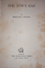 The Sow's Ear by Bernard Cronin (published 1933) is a rural drama and love story set in late 19th and early 20th century Tasmania, Australia.